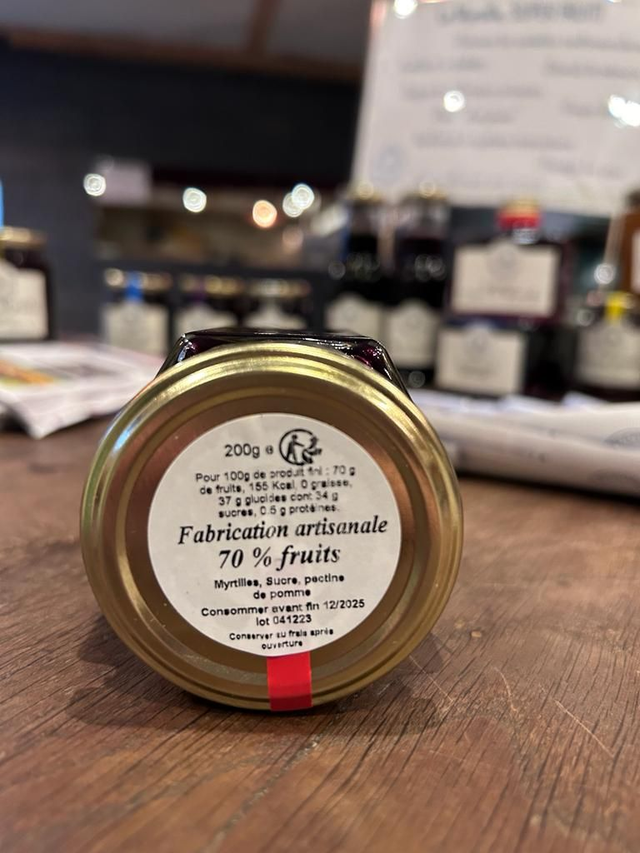 Notre confiture Myrtilles Tradition, pot de 200g est cuisinée avec 70% de fruits! Myrtilles cueillies à la main dans nos vergers!